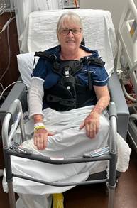 I started to think about the progress I had made, enumerating the positives. I no longer had a catheter. I was no longer chained to the bed. I could move about. I had a back brace. I had a walker. I had Leslie. I could shower. I could wear my own clothes. I had the PT ladies every day, teaching me to do things with this brace on. I had a pic-line in my arm, so I didn’t have to get stuck every time they drew blood or gave me a shot.