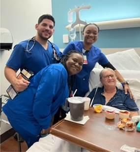 In the meantime, she made our comfort and progress her business. She heard how uncomfortable Leslie’s previous hospital bed was with the deflating air mattresses. So, she ordered one of her staff to do some redecorating. That night, a lovely woman came to our room wheeling a real, freshly made hospital bed for Leslie. She moved things out of the way. Set up the room so we could get around and asked if we needed anything more. It was a definite bright spot in our long stay.